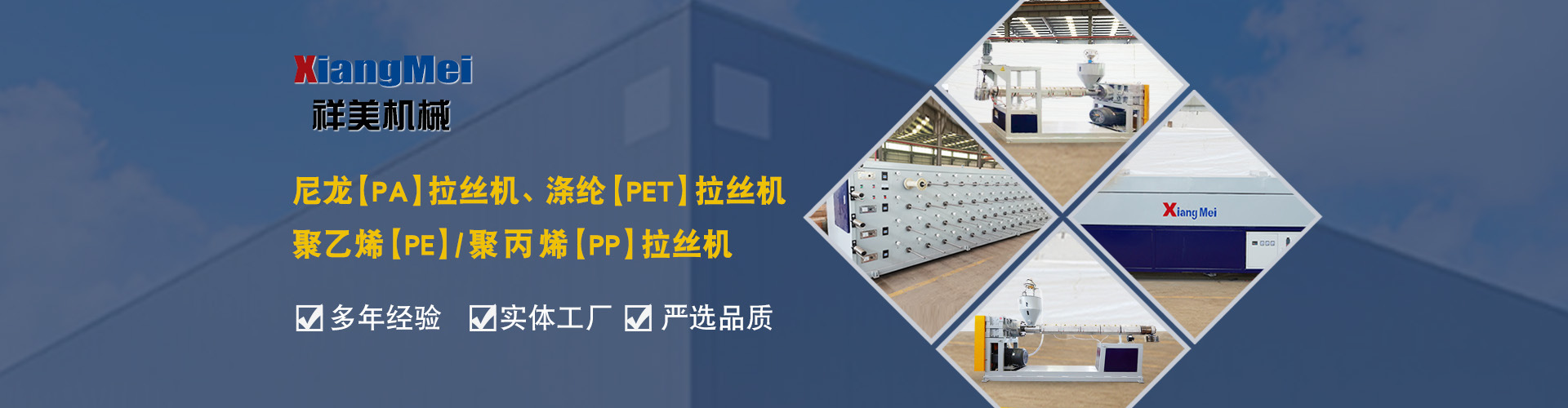 我公司是一家具有30多年專業(yè)生產(chǎn)塑料拉絲機(jī)的企業(yè),作為國內(nèi)最早生產(chǎn)圓絲塑料拉絲設(shè)備的企業(yè),成為國內(nèi)同行競相爭仿的標(biāo)桿,公司產(chǎn)品主要可以生產(chǎn)聚乙烯(PE)、尼龍(PA)、聚丙烯(PP)、滌綸(PET)等作原料拉絲機(jī)設(shè)備及其配套設(shè)備、鉛芯機(jī)設(shè)備及其配套設(shè)備,拉絲機(jī)設(shè)備主要生產(chǎn)的產(chǎn)品有單絲、復(fù)絲、扁絲、刷絲、草坪絲、拉鏈絲、割草線等各類線絲,公司產(chǎn)品在國內(nèi)同行業(yè)中性價(jià)比高、有良好的口碑,曾獲“國家高新技術(shù)、新產(chǎn)品博覽會金獎”被輕工部定位替代進(jìn)口產(chǎn)品、國家級新產(chǎn)品,并多次獲得省、市科技進(jìn)步獎,產(chǎn)品遍布全國大部分地區(qū),并遠(yuǎn)銷日本、意大利、俄羅斯、韓國、印度、澳大利亞、印度尼西亞、墨西哥、菲律賓、泰國、朝鮮、巴基斯坦、烏茲別克斯坦、越南、馬來西亞、老撾、越南、坦桑尼亞等國家和地區(qū)。 公司實(shí)行現(xiàn)代化企業(yè)管理,始終秉承以科技為先導(dǎo),制造為基礎(chǔ),管理為核心的企業(yè)面貌,運(yùn)用先進(jìn)的生產(chǎn)設(shè)備,創(chuàng)新的思維理念,確保產(chǎn)品多樣化、系列化,高品質(zhì),把誠信、責(zé)任、創(chuàng)新作為祥美人不斷的追求的目標(biāo),為新老客戶打造高品質(zhì)的拉絲設(shè)備。 公司位于黃海之濱、亞歐大陸橋東橋頭堡的海濱城市——連云港,這有海陸空便捷的交通網(wǎng)絡(luò)、風(fēng)景秀麗的山海風(fēng)光,總經(jīng)理江中堯先生攜公司全體員工竭誠歡迎各界人士、中外新老客戶來連洽談業(yè)務(wù)。